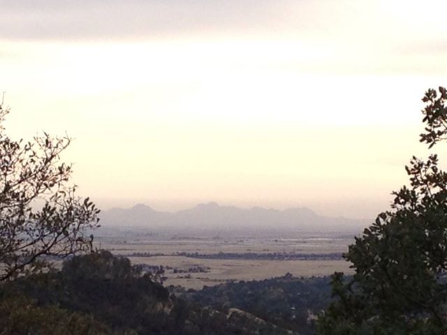 We stopped to take in a view of the Sutter Buttes today, but they were barely visible through the agricultural dust from the Great Valley of central California. Also known as the “smallest mountain range in the world,” the Buttes rise about 2,000 feet above the fields of walnut, rice, almond, and other crops that abundantly grow in the central California region.